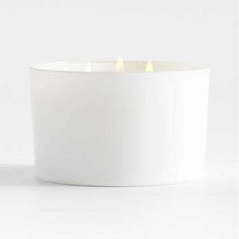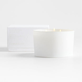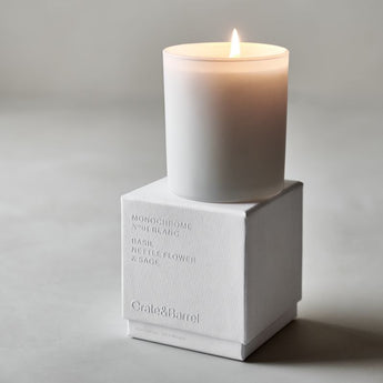 Totalmente moderna en blanco monocromático. Nuestra vela de tres mechas impregna el ambiente con los aromas vigorizantes de ralladura de limón, menta y albahaca, con la riqueza de la salvia, la madera de cachemira y el almizcle. Presentada en una caja de regalo blanca, el recipiente de vidrio blanco, lleno de cera blanca, tiene un aspecto limpio y fresco que iluminará su mesa de centro, cómoda o repisa de la chimenea. Parte de nuestra exclusiva colección de aromas Monochrome, la vela No. 01 Blanc es exclusiva de Crate & Barrel.