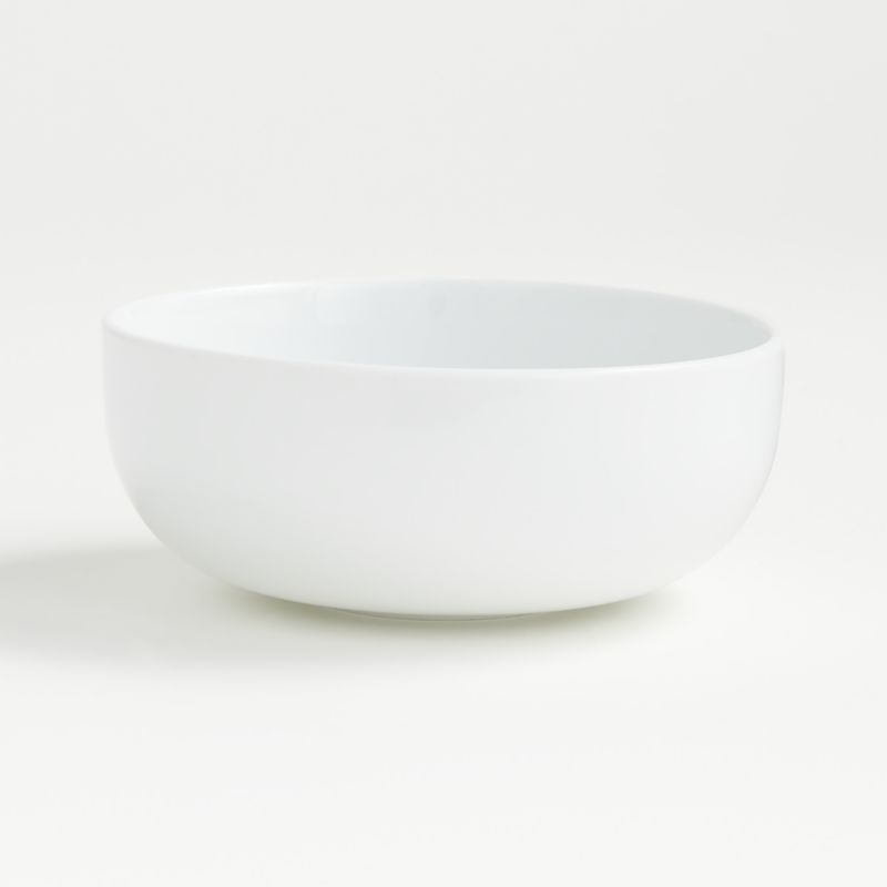 Crisp white porcelain dinnerware trends modern and flexible in modern, rounded coupe shapes perfectly at ease in casual and formal settings. Low curves allow for easy stacking and space-saving storage.