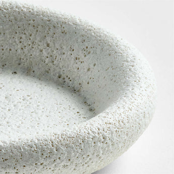Inspirado en las nubes, nuestro portavelas Cirro embellece la mesa con sus suaves curvas ondulantes. Acabado a mano con un esmalte volcánico blanco texturizado, su centro plano sostiene una vela de pilar o un grupo de velas pequeñas. Completa el look orgánico y escultural de tu mesa de comedor combinando el portavelas Cirro con nuestro popular centro de mesa.