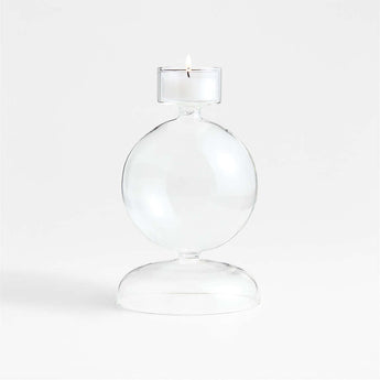 Inspirado en la cristalería moderna de mediados de siglo, nuestro portavelas Venezia se expande hasta formar una exuberante burbuja que crea una silueta escultural y a la vez alegre. Soplado a mano en vidrio transparente, este gran portavelas sirve como soporte para una vela o como florero. Combina nuestros exclusivos portavelas Venezia en diferentes alturas y tonos para crear un efecto extravagante en tu mesa de comedor o repisa.