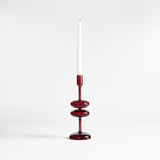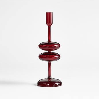 Inspired by mid-century modern glassware, our Venezia candle holder supports two elongated bubbles on a slender stem for a sculptural-yet-playful silhouette. Crafted of brilliant red glass for a festive look, the medium candlestick supports a taper or doubles as a bud vase for dried and faux botanicals. Mix and match our exclusive Venezia candle holders in various heights and hues to create an extravagant effect on your holiday dining table or mantel.