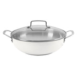 This premium cookware collection includes all of the essentials for classic cooking techniques like slow simmers, delicate browning and reduction of liquids and is also oven safe. An impact bonded aluminum encapsulated base for fast and even heating. Stainless steel cooking surface does not become discolored, react with foods, or alter flavors. Dishwasher safe so cleanup is conveniently hassle free. A beautiful white matte exterior to brighten up your kitchen and complement any kitchen décor