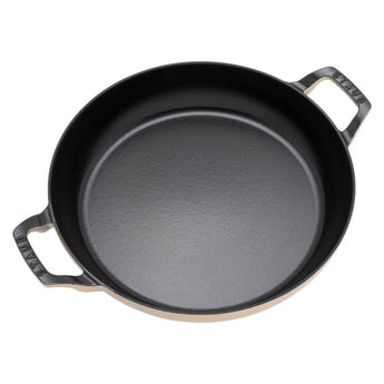 El esmalte en un tono tostado cremoso inspirado en el sésamo recubre esta brasera de hierro fundido, convirtiéndola en una magnífica sartén que se puede llevar fácilmente de la estufa al horno y a la mesa. Con el interior negro mate texturizado, característico de Staub, que garantiza un dorado y una caramelización óptimos, la brasera cocina de forma uniforme y eficiente. La tapa de vidrio resistente se ajusta perfectamente para retener la humedad mientras cocinas costillas, jarretes de cordero o tubérculos a la perfección. Un complemento perfecto para cualquier mesa, la brasera cuenta con una perilla de latón que le da un toque brillante y elegante.