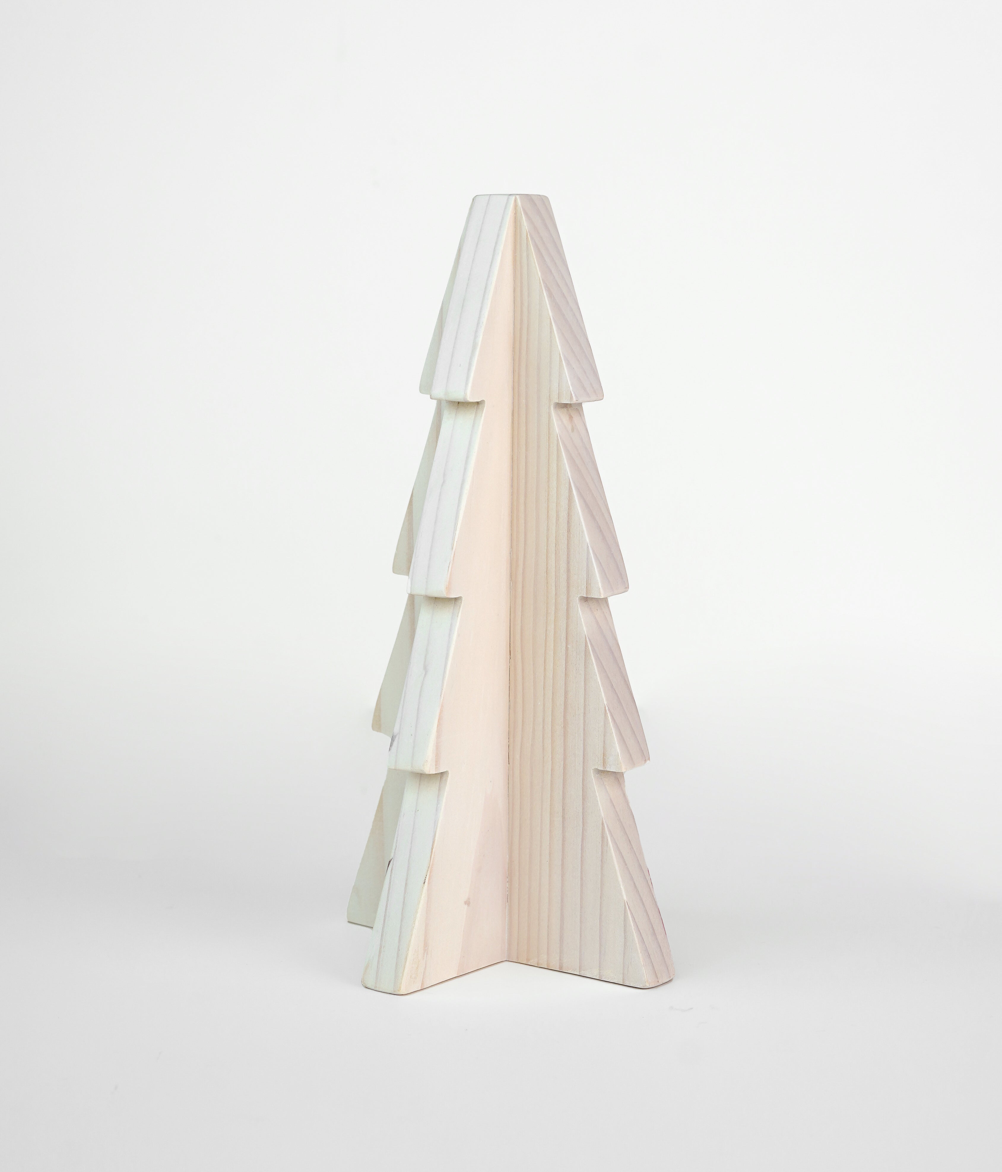 Inspired by mid-century modern wooden sculptures, our Abd Med Tree Pine White trees feature elegant silhouettes full of presence. The simple tiered structure adds dimension without detracting from the beautiful grain of the pine wood. Hand-finished in a rich tone for a warm, organic look, the Abd trees pair perfectly with one another.
