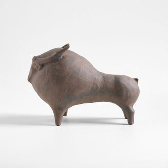 Con sus proporciones exageradas, nuestra escultura de búfalo se asemeja tanto a una obra de arte abstracto moderno como a una reliquia prehistórica. El aluminio fundido da forma a este icono de la pradera, acabado a mano por hábiles artesanos en un cálido marrón con una ligera textura que evoca el pelaje lanudo del bisonte, dándole la apariencia de un objeto encontrado o un tesoro de mercadillo. Con una presencia imponente en un escritorio o estantería, la gran escultura de búfalo también resulta encantadora en una mesa auxiliar, la repisa de la chimenea o la consola de la entrada.