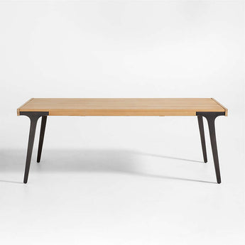 Tablones de roble blanco macizo con acabado natural satinado dan vida a nuestra mesa de comedor Lakin con su color natural y su vibrante veta de madera. Con un acabado envejecido que imita el hierro fundido, las patas de metal se integran a la perfección con el faldón de madera de la mesa, angulándose para maximizar el estilo y el espacio para las piernas. Los extremos de la tabla de cortar se extraen para acomodar dos hojas que amplían el espacio para sentarse.