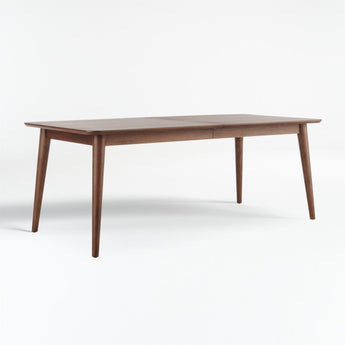 Nuestra mesa de comedor extensible Tate, inspirada en los años 60, evoca la atemporalidad del diseño de mediados de siglo con un perfil a medida y una forma estilizada. Fabricada en chapa de nogal, la mesa personifica las líneas limpias del diseño moderno con un tablero biselado estilizado. Integradas con el delgado faldón de la mesa, las patas cónicas se estrechan en un ángulo sutil. Lista para recibir invitados adicionales, la mesa incluye dos hojas autoguardables que amplían la capacidad a ocho comensales. Diseñada por Blake Tovin, la mesa de comedor Tate de nogal de mediados de siglo es una exclusiva de Crate and Barrel.