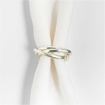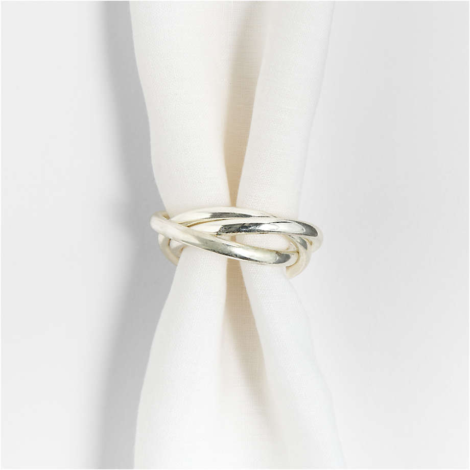 Servilletero de 3 anillos. Como un elegante trío de brazaletes, tres bandas entrelazadas forman un accesorio de mesa atemporal. El latón bañado en plata envuelve con gracia una servilleta de tela, creando un accesorio de comedor tan elegante y brillante como una joya fina. Los servilleteros son el toque final para una mesa bien puesta. Alterne con nuestros servilleteros Aria de 2 anillos para un look dinámico. Para una mesa formal en cenas elegantes, añada nuestras copas de vino con tallo plateado y uno o más de nuestros candelabros plateados. Material: Metal. Dimensiones: 3,8 cm de diámetro.
