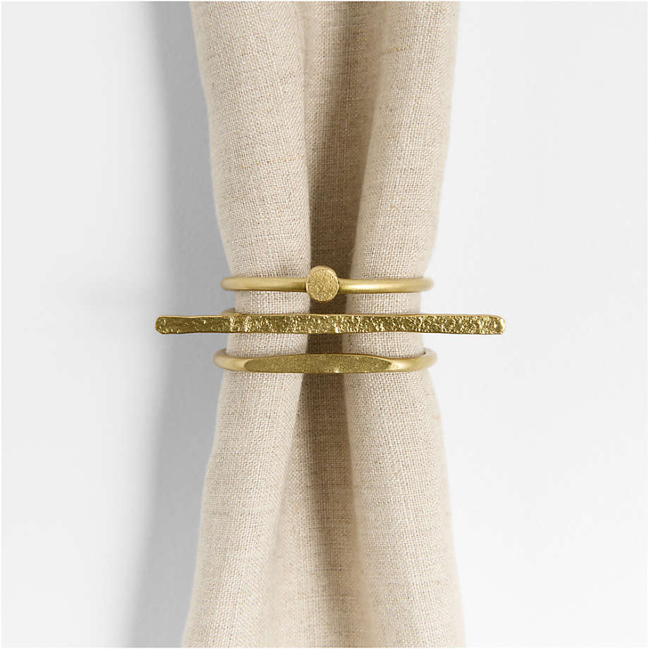 Como un conjunto de atrevidos brazaletes hechos a mano, estos tres servilleteros se pueden usar solos o apilados en combinaciones divertidas. Estos delicados y modernos anillos con acabado de latón tienen mucha textura intrigante. Cargue servilletas con multitud de anillos para cenas íntimas o distribuya la riqueza al poner la mesa para reuniones grandes.