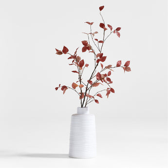 Los ángulos de mediados de siglo dan vueltas en nuestro jarrón de barro acanalado. Acabado con un esmalte reactivo blanco mate, el diseño en forma de botella tiene la forma perfecta para acorralar un puñado de tallos secos o falsos. Alto y de textura profunda, nuestro exclusivo jarrón grande Holden también se destaca por sí solo como una pieza decorativa escultórica.