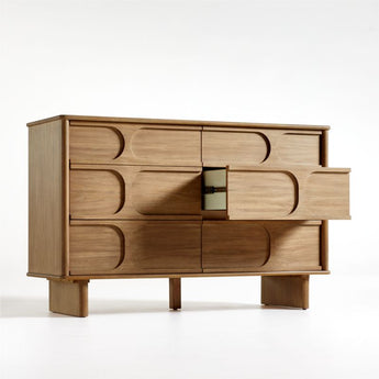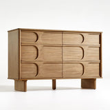 Nuestra colección Wes amuebla la habitación de tus hijos con una combinación única de suaves curvas orgánicas y llamativos detalles geométricos en álamo y roble natural. La cómoda de madera Wes de seis cajones ofrece un almacenamiento práctico y elegante para ropa y mucho más. Sus modernos recortes crean tiradores ocultos para seis amplios cajones que mantienen los objetos esenciales organizados y ocultos. Con bordes suaves, esta cómoda de madera Wes de seis cajones se alza sobre patas de espiga extragrandes.