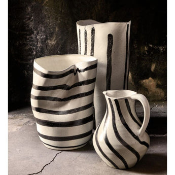 Jarrones de terracota con cuadros blancos y negros. Jarrones pintados y fabricados a mano.