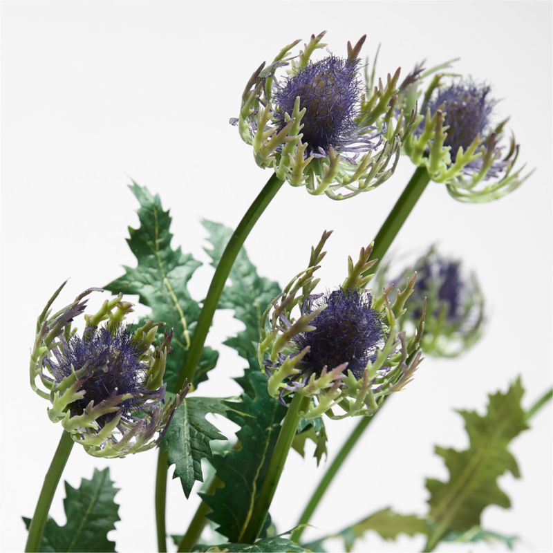 Our faux sea holly stem instantly adds coastal style to your decor. A beachy beautysometimes referred to as thistlethe fascinating plant thrives in sunny seasides. Our lifelike version perfectly recreates the delicately spiky structure and fascinating blue hues. Unparalleled in quality and skillfully crafted to look just like the real thing, the tall stem boasts bendable branches that can be adjusted for the most lifelike look.