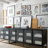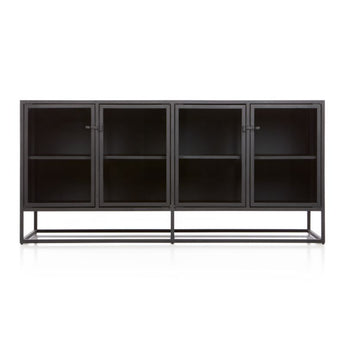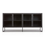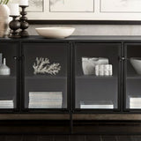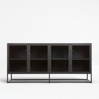 Inspirada en las líneas limpias de las ventanas francesas abatibles vintage, Casement almacena y exhibe tras puertas de cristal transparente que se cierran con sencillos herrajes industriales. El diseño estilizado de acero de la colección combina con muebles tanto tradicionales como modernos. ^ Diseñada por Paul Schulman de Schulman Design, esta credenza exhibe piezas preciadas en estantes ajustables o en el borde superior. La credenza negra Casement de 167 cm es exclusiva de Crate and Barrel.