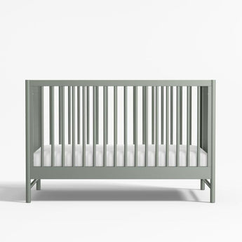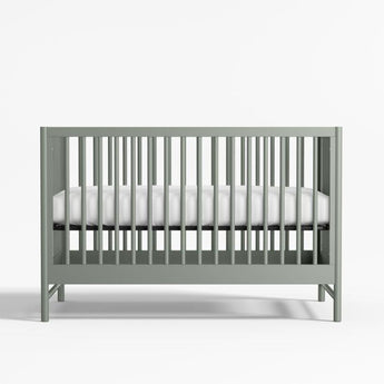 With its clean lines, our Classic collection gives a subtle nod to mid-century designbut its trend-forward colors make it a stunning addition to any modern nursery. The crib's rounded spindles and earthy laurel green hue blend effortlessly with any decor, and its solid pine construction is as durable as it is beautiful. Plus it's designed to grow with your little one: Easily convert the crib into a toddler bed with the addition of our matching Classic Collection Toddler Bed Rail (sold separately). Pair with our Classic 3-Drawer Dresser for a coordinated look.