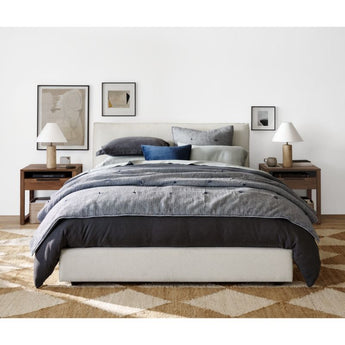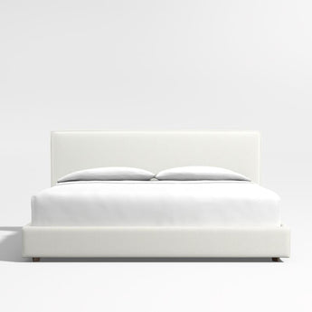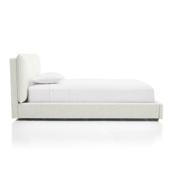 Inspirada en nuestro sereno sofá Lotus, esta cama logra el equilibrio perfecto entre líneas limpias y una suave simplicidad para el dormitorio moderno. Con rieles tapizados y un cabecero acolchado para leer y reclinarse, esta cama tamaño queen está tapizada con una tela texturizada de tacto suave y alto rendimiento. Hecha con fibras recicladas, esta tela Revolution, respetuosa con el medio ambiente, es ultraduradera, resistente a las manchas y muy fácil de limpiar. El ribete del cojín del cabecero le da un toque informal a Lotus. La cama Lotus Frost King es exclusiva de Crate and Barrel.