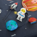 Con nuestra Silla de Actividades Deep Space Baby en tu órbita, la hora del juego siempre está lista para despegar. La bandeja extraíble de la silla tiene mucho para mantener a los curiosos cadetes activos y estimulados, desde un espejo y un sonajero hasta chirriadores. Un asiento de algodón facilita los cómodos viajes por el cosmos imaginario, mientras que los diseños estelares de Michelle Romo con temática espacial son una verdadera maravilla.