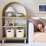 Nuestro contenedor de almacenamiento Nella, más pequeño, logra el equilibrio perfecto entre estilo y funcionalidad. Su interior es resistente y espacioso para juguetes y artículos esenciales para niños, pero su exterior de tejido gofrado es donde este diseño realmente brilla, incorporando una textura acogedora de una forma inesperada. Además, su tono gris neutro le permite colocarlo en cualquier lugar, desde guarderías y habitaciones infantiles hasta salas de juegos y espacios familiares compartidos.