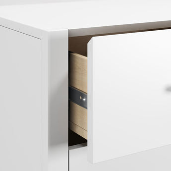 - 6 cajones con tiradores de plata cepillada y guías laterales metálicas para cajones.
