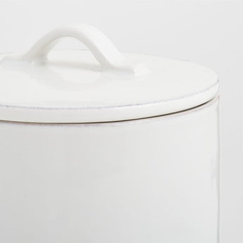 Diseñado para complementar nuestra codiciada colección Marin, este encantador recipiente exhibe las mismas líneas artesanales y orgánicas. Este recipiente de gres, esmaltado en blanco brillante, es ideal para exhibir y almacenar ingredientes esenciales en la encimera o en estanterías abiertas, y se limpia fácilmente en el lavavajillas. Una junta de silicona proporciona un sellado hermético, mientras que el asa acanalada le da un toque elegante. Para completar el look, combine el recipiente grande con los recipientes pequeños y medianos a juego y nuestra vajilla y piezas para servir Marin a juego.