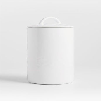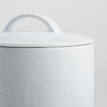 La vajilla de porcelana contemporánea representa una fusión de refinamiento y rusticidad. Nuestro recipiente grande de porcelana blanca adquiere matices orgánicos con una superficie finamente "martillada" que ondula la luz. Un asa delgada ofrece un fácil acceso a la harina o el azúcar, mientras que una junta de silicona proporciona un sello hermético. Lo suficientemente suave como para no dañar los estantes o las encimeras, la superficie inferior sin esmaltar le da a cada pieza un aspecto artesanal. Junto con sus contrapartes pequeñas y medianas, el recipiente grande combina con nuestra exclusiva colección de vajillas Mercer.