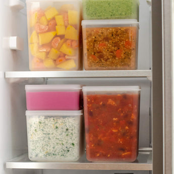 - Los cubos transparentes te permiten ver lo que estás almacenando (adiós, misteriosas bolsas de productos congelados) para que puedas recordar lo que hay en tu congelador y reducir el desperdicio de alimentos.