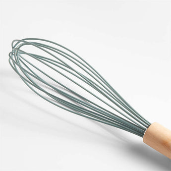 Bata claras de huevo, adobos y crema batida con nuestro exclusivo batidor de silicona y madera verde salvia. Fabricado con púas de acero inoxidable para mayor resistencia, el cabezal recubierto de silicona mezcla con destreza masas espesas o prepara merengues delicados con púas flexibles que raspan el tazón o la sartén hasta dejarlo impecable. La silicona suave al tacto no daña los utensilios de cocina antiadherentes y es resistente a manchas, rayones y temperaturas de hasta 600 grados. Complementando el intenso tono verde, la madera de haya sostenible da forma a un mango cilíndrico que ofrece un agarre firme y una apariencia cálida y clásica. Nos encanta cómo el refinado borde biselado remata el mango alargado con un detalle dinámico. Combine el batidor grande con los demás utensilios de proporciones exquisitas de nuestra exclusiva colección Crate & Barrel para un espacio de trabajo bien equipado, a la altura de cualquier desafío culinario.