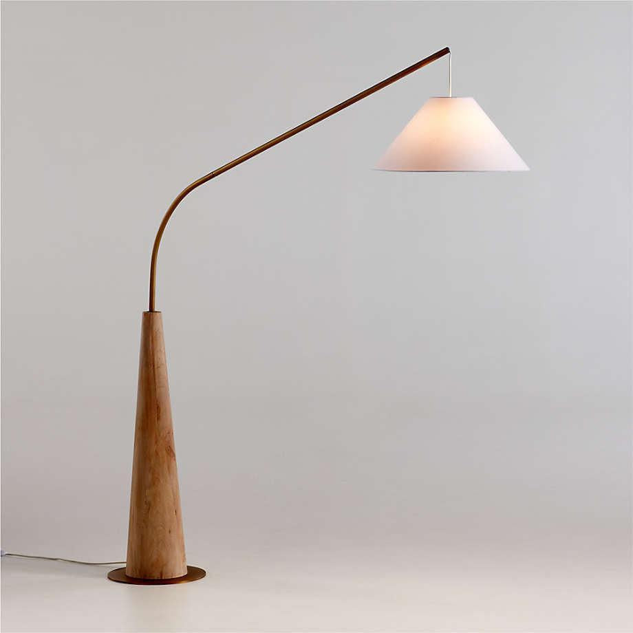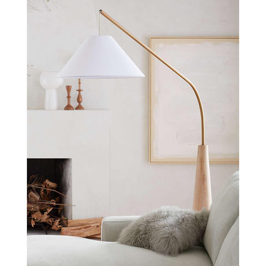 Los esbeltos arcos de latón bruñido sostienen con gracia la pantalla de lino color marfil de nuestra lámpara de pie Gibson. Con una base alta y cónica de madera sobre un círculo de acero con acabado en latón, la lámpara funciona como luz de techo gracias al largo alcance de su brazo que ilumina justo donde la necesitas. La pantalla cónica cuelga de un cordón de tela color marfil, lo que realza la sensación de flotabilidad. Ideal para una sala de estar, nuestra lámpara de pie Gibson, de líneas sencillas, es una exclusiva de Crate & Barrel.