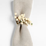 Napkins in a winter wonderland. This delightful botanical napkin ring features white berries that feel right at home with holiday wreaths and garlands. Slip the napkin ring on simple neutral napkin for a chic monochrome look or pair with a rich green napkin for a pop of seasonal color.