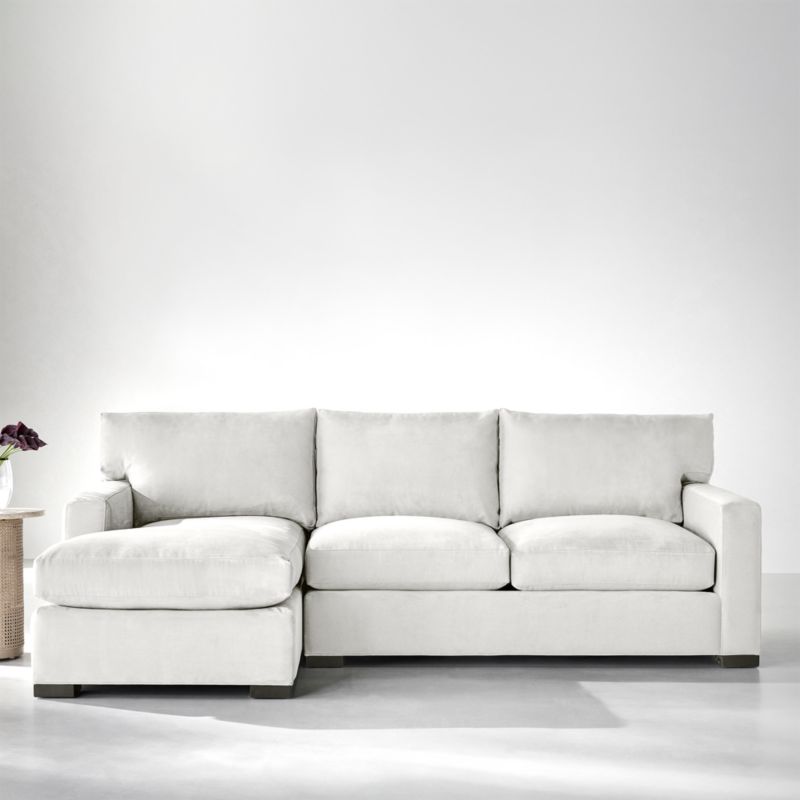 The quality and comfort of our Axis collection is legendary. Casual and inviting, the sectional offers exceptional, long-lasting durability. Angled backs and deep seat cushions filled with a plush feather-down blend encourage lounging, while track arms give the sectional the clean look and modern style that make Axis a Crate & Barrel icon.