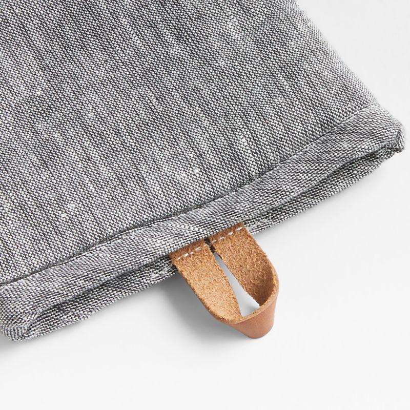 Our classic grey oven mitt combines the great look of chambray with a natural leather hanging loop. Enzyme washed for softness, the blend of linen and organic cotton will soften even more with washing. Pair with the matching apron and pot holder for a cohesive kitchen look or thoughtful host gift.
