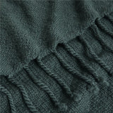 Our spruce green throw couldn't get cozier. Knit of yarn-dyed wool with a hint of acrylic, the supersoft throw blanket rivals a handknit heirloom with chunky stockinette stitching on one side, garter on the other. Long fringe is braided and knotted to further enhance this throw blanket's rustic appeal.