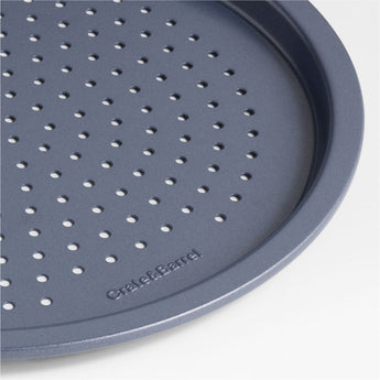 Super durable, lighter than cast iron and oh, that gorgeous unexpected blue. Perfect for thin-crust mini pizzas, our slate blue round pans are part of our bakeware collection that takes its cue from professional kitchens. Made of carbon steelan alloy of 99% iron and 1% carbon that's nearly indestructiblethe four petite pans heat quickly and evenly for consistent baking and perfect browning. Perforations allow for greater airflow and crispier crusts, and a double layer of silicone-based non-stick coating ensures easy release and quick cleanup. Pair with our other exclusive slate blue pans to build a versatile baking collection that's ready for any recipe.