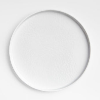Glossy and lightly rippled, our Stacks melamine dinner plate fools the eye with the look of real ceramic glazed bright white. The clean coupe shape offers crisp, modern contrast to the subtle artisanal texture. Pair with the other durable, dishwasher-safe pieces in our Stacks dinnerware collection for worry-free entertaining indoors and out. Stacking neatly for compact storage, our white melamine dinner plate is a Crate & Barrel exclusive.
