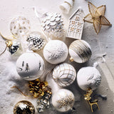 Each handblown glass ornament is etched with a scattering of delicate gold stars to catch the light and create Christmas tree magic.