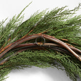 Gorgeous green with lifelike detailing, this faux cypress wreath looks lovely hanging on a door frame or above your fireplace. Or create a magical centerpiece by arranging flameless pillar candles, sparkling ornaments and glittered pinecones in the middle of the large wreath. Our exclusive wreath brings the natural beauty of the winter landscape indoors—without the sap and shedding needles. Add the other faux botanicals in our cypress collection for cohesive winter decor.