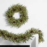 Drape your doorway, fireplace mantel or buffet in the distinctive beauty of the Norway spruce. Our garland recreates the dark green foliagestiff leaves that only resemble pine needlesof the Norwegian botanical, with bendable branchlets that can be adjusted for the most lifelike look. Real pine cones add a natural touch, while starry white lights illuminate the garland and your winter decor. Switch on the battery-powered swag or use the timer and watch it shine throughout the night.