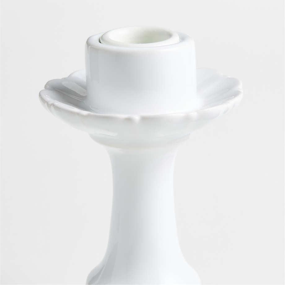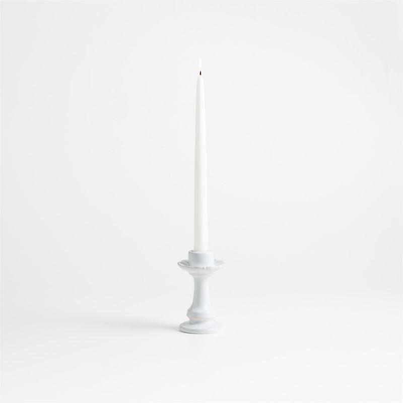 Los husillos torneados a mano, característicos de la ebanistería italiana, inspiraron las siluetas ornamentadas de nuestra colección de candelabros Firenze. Talentosos artesanos moldearon a mano el candelabro de gres para crear sus curvas clásicas (apreciamos especialmente el borde festoneado que atrapa la cera goteando), mientras que el espeso esmalte blanco brillante luce fresco y moderno. Diseñado para sostener velas, velas de té o votivas, este versátil candelabro se adapta a la perfección a tu estado de ánimo y ocasión.