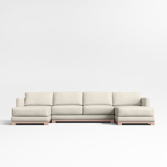 Gather Wood Base 3-Piece U-Shaped Sectional Sofa with Double Chaise Lounge