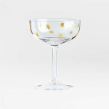 Etched gold stars shimmer and shine on this hand-blown classic coupe glass. The gracefully rounded bowl and tapered stem make the coupe a perfect serving vessel for champagne or holiday cocktails. Perfect for winter-themed gatherings or a sparkling New Year's Eve celebration, this glass adds a touch of seasonal elegance whenever you use it.