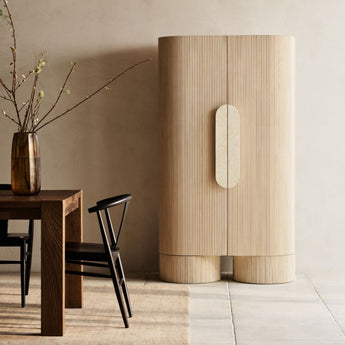 Kahn Ribbed Ash Wood Closed Storage Cabinet