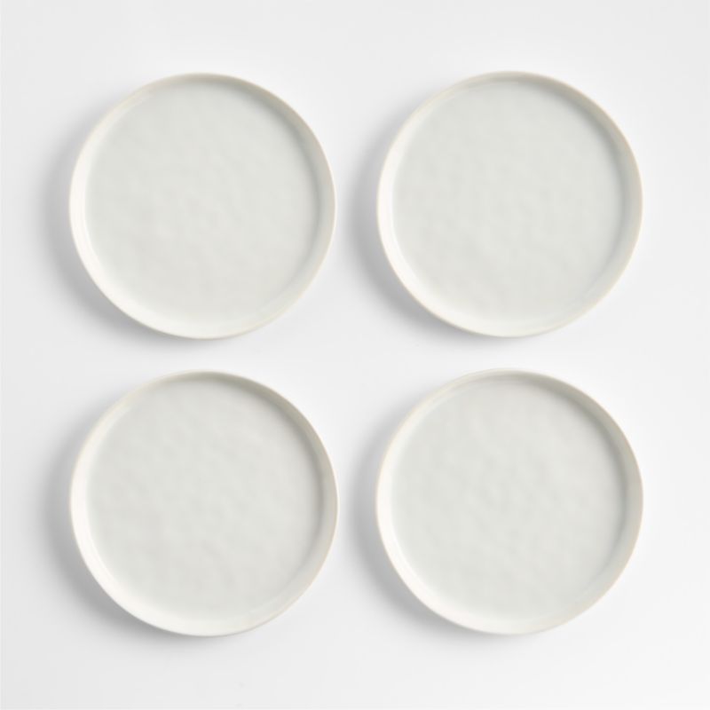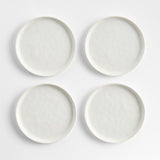 Based on our popular Mercer dinnerware, these coasters represent the same fusion of refinement and rusticity. The round slim profile of the coasters take on an organic overtone with freeform rims and a finely ""hammered"" surface that ripples the light. Smooth enough to not harm tables, the unglazed ceramic bottom gives each piece an artisanal look.
