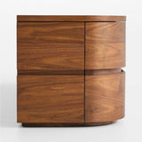Milano looks to Italian design for its low profile and modern way with wood. Continuous walnut veneer shapes the media console with extravagantly curved corners and seamlessly integrated drawers that put all the focus on the beautiful wood grain. Recessed finger pulls divide the credenza horizontally into three sections, lending linear interest as well as carving out two side cabinets and a central set of drawers. We love the beautifully concealed storage and the low vantage point that puts your TV at just the right height for comfortable viewing.
