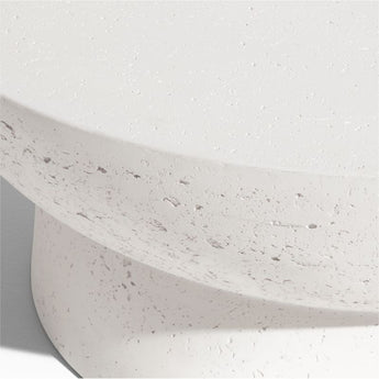 Simple yet impactful, our Marfa coffee table brings its sculptural presence to outdoor living. The off-white table sets a drum-shaped top on a wide cylindrical base for a look that's both modern and classic. Rich with unique markings and texture, the table is made of a stone-like mix of concrete and fiberglass that looks amazing with any of our outdoor lounge furniture. Durable enough to weather the elements, the coffee table can be used indoors or out.