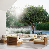 Inspirada en las formas de la cerámica y la arquitectura mexicanas, nuestra mesa de centro Sayulita aporta un toque escultural a las reuniones al aire libre. Hecha de una mezcla de hormigón y fibra de vidrio con un acabado similar a la piedra, esta mesa color marfil combina un segmento esférico con una base rectangular para lograr una estética moderna y clásica a la vez. Esta amplia mesa combina con un sofá o seccional para crear un ambiente de salón al aire libre con un toque de estilo interior.