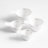 Diseñadas para combinar con nuestra exclusiva vajilla Aspen, nuestras tazas medidoras de cerámica blanca aportan una belleza blanca y cispeada a la cocina y al horneado. Mantuvimos el diseño simple para permitir que el material brille, colocando cada taza con un asa con lengüeta y agregando medidas de texto clásicas en una fuente moderna. Versátil y regalable, nuestro juego de tazas medidoras Aspen, apto para lavavajillas, se combina con las cucharas medidoras a juego.