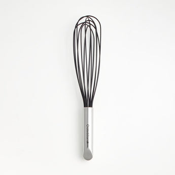 Bata claras de huevo, adobos y crema batida con nuestro exclusivo batidor de silicona negra y acero inoxidable. Recubierto de silicona negra, el cabezal de acero inoxidable mezcla con destreza las masas más espesas o los merengues más delicados, mientras sus púas flexibles raspan el tazón o la sartén para dejarlo impecable. La silicona suave al tacto no daña los utensilios de cocina antiadherentes y es resistente a manchas, rayones y temperaturas de hasta 600 grados. El acero inoxidable pulido da forma a un elegante mango cilíndrico que ofrece un agarre firme y una apariencia profesional. Nos encanta cómo el refinado borde biselado remata el mango alargado con un detalle dinámico. Combine el batidor grande apto para lavavajillas con los demás utensilios de exquisitas proporciones de nuestra exclusiva colección Crate & Barrel para un espacio de trabajo bien equipado, a la altura de cualquier desafío culinario.