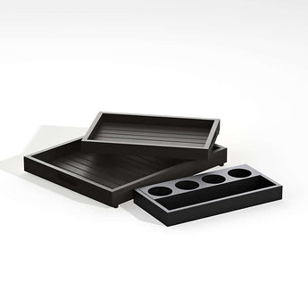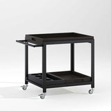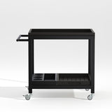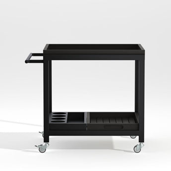 Easy, breezy Alfresco has a contemporary look that always feels fresh. Well-made with waterproof materials, it's designed to welcome warm-weather entertaining season after season. The versatile cart moves on caster wheels to where it's needed as a bar or food station. The frame includes cutouts to house four bottles as well as two trays on the top and bottom that can be removed for serving drinks or appetizers.