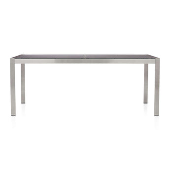 Nuestra colección Dune de estilo urbano es un espacio interior moderno que vive al aire libre. Esta elegante mesa de comedor de acero inoxidable, apta para exteriores, está ingleteada con precisión en las esquinas, soldada, pulida y pulida a mano para lograr una apariencia uniforme, y rematada con cristal.