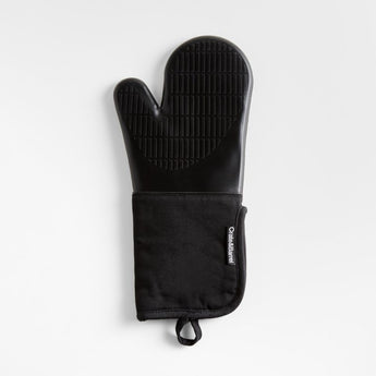 Mantén la calma con nuestra exclusiva manopla de horno negra con agarre de silicona. Forrada en felpa, esta manopla de algodón orgánico protege tu brazo y mano mientras cocinas u horneas. El agarre de silicona proporciona un agarre firme y resistente al calor en mangos de sartenes calientes, sartenes de hierro fundido y fuentes recién horneadas. Cuando no la uses, la manopla de silicona queda fácilmente a mano gracias a su anilla y a su imán oculto. Para un look uniforme, combínala con el agarrador a juego y nuestros otros textiles de cocina negros.